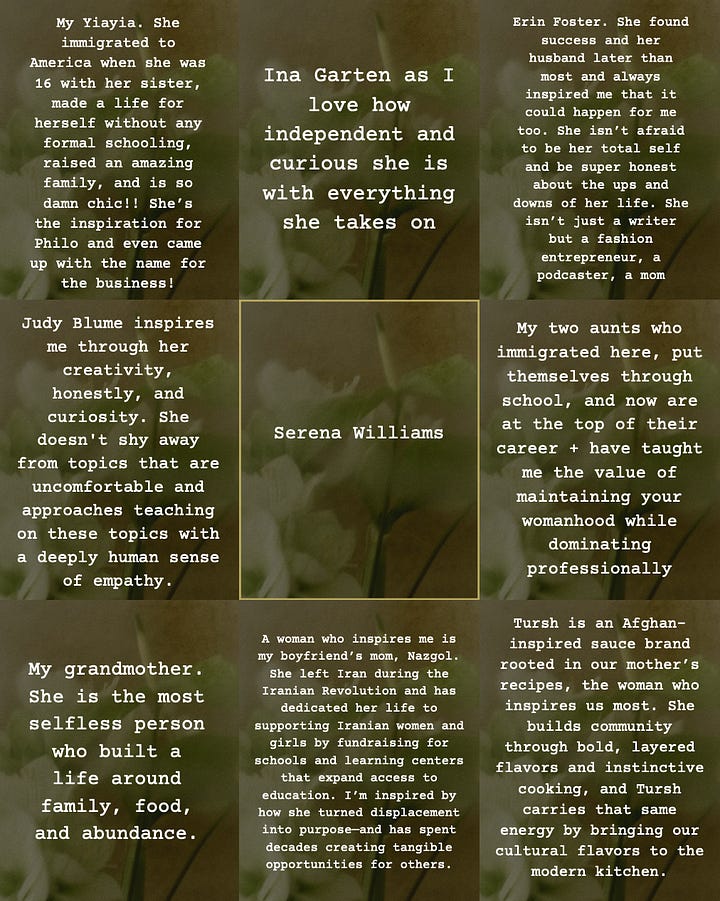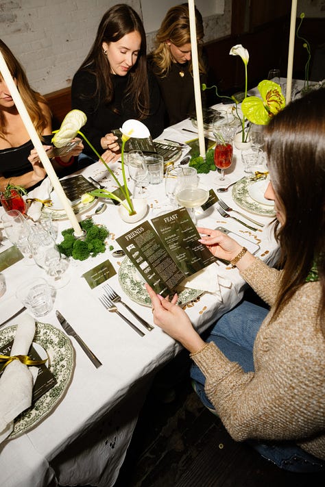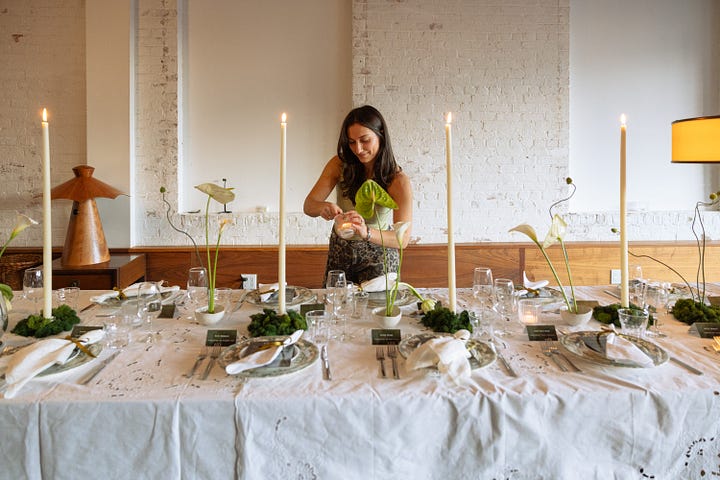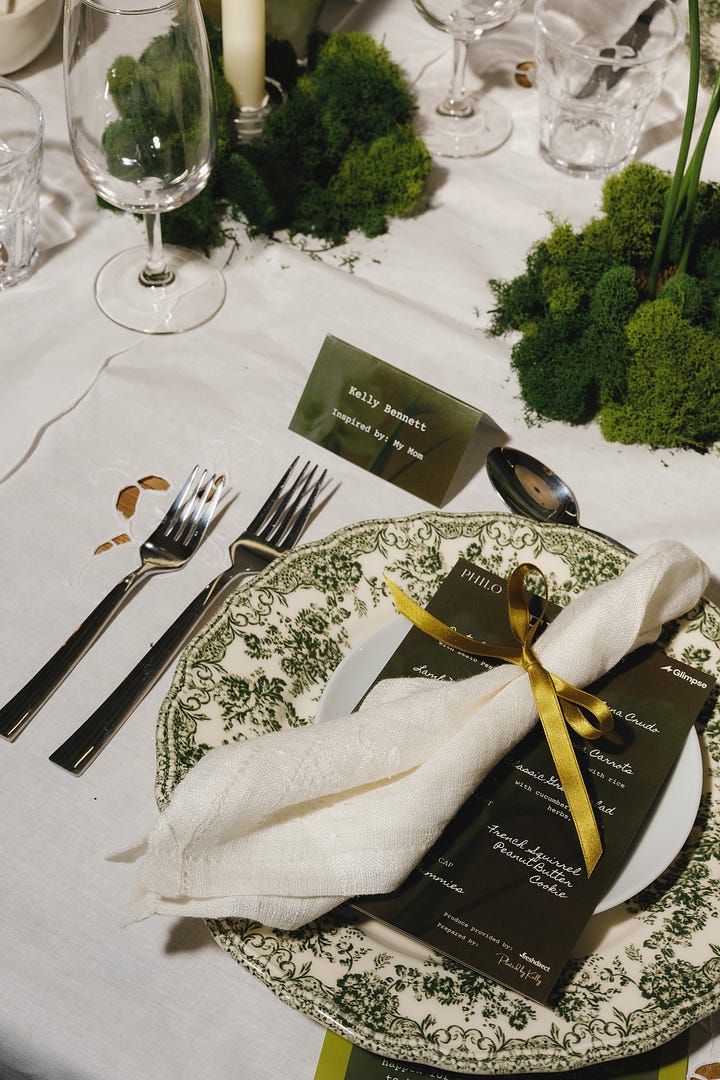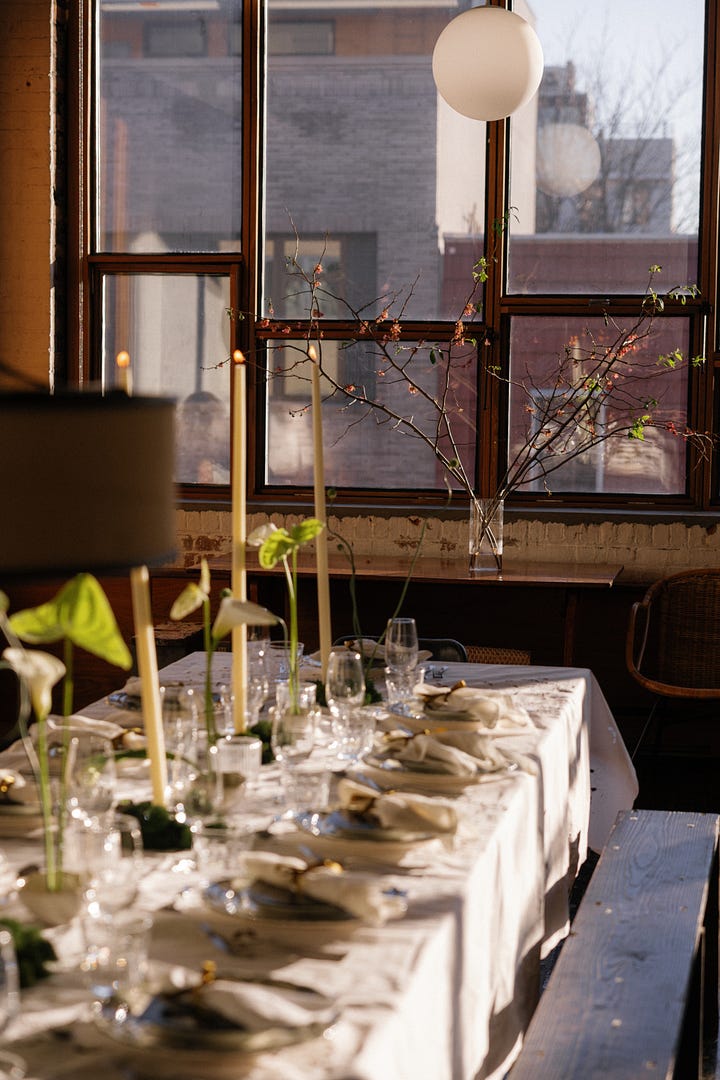 I knew I wanted to celebrate Women’s History Month this year with an intimate sit-down dinner. In the first year of Philo, so many incredible women brought me in, gave me advice, made an intro, did a favor, gave reassurance and I wanted to honor that network. I also felt inspired by those in our lives and past who have inspired us - the Legacy of our heroes. Color is also a big inspiration for me and they usually come to me all at once, like an obsession. This month? Chartreuse.