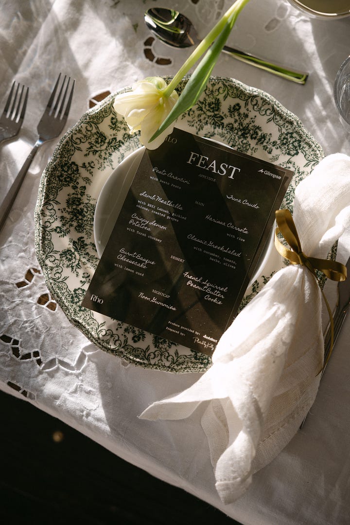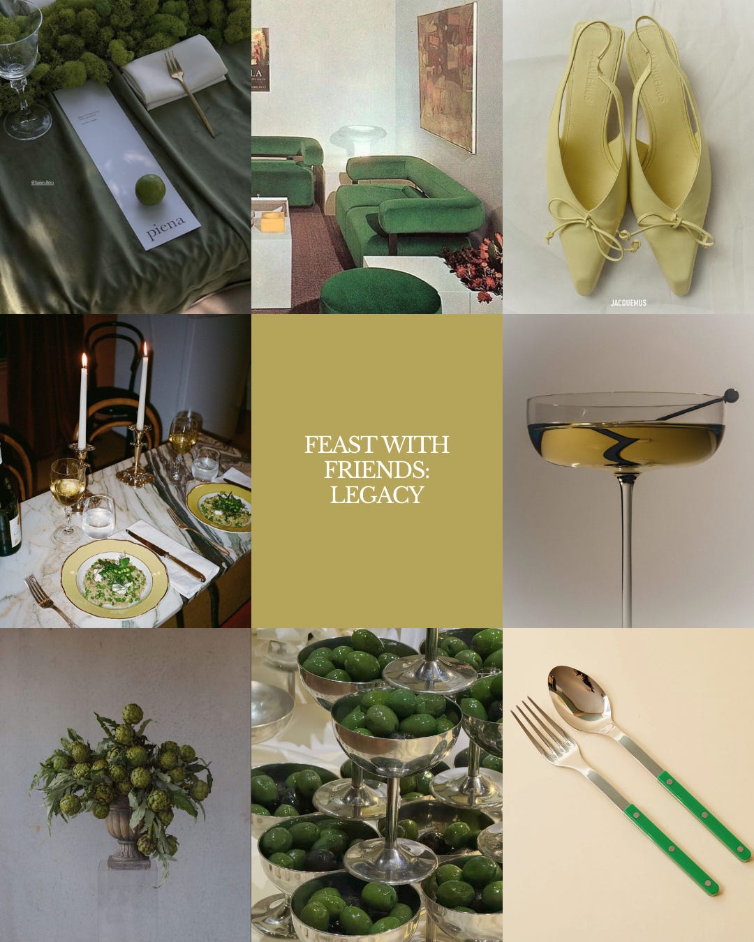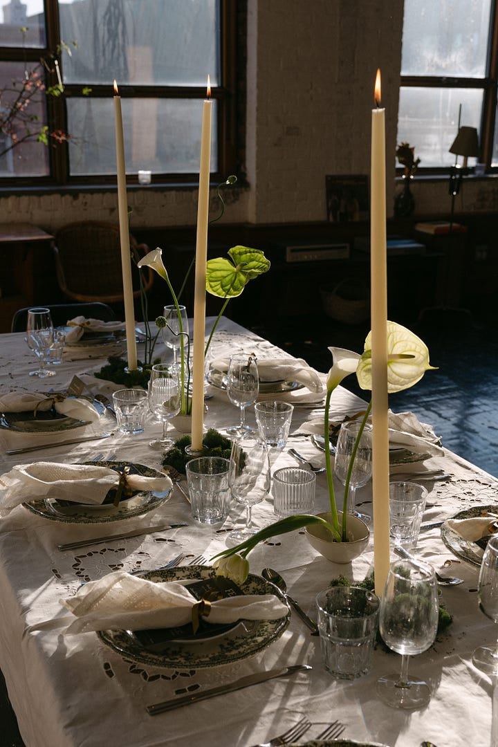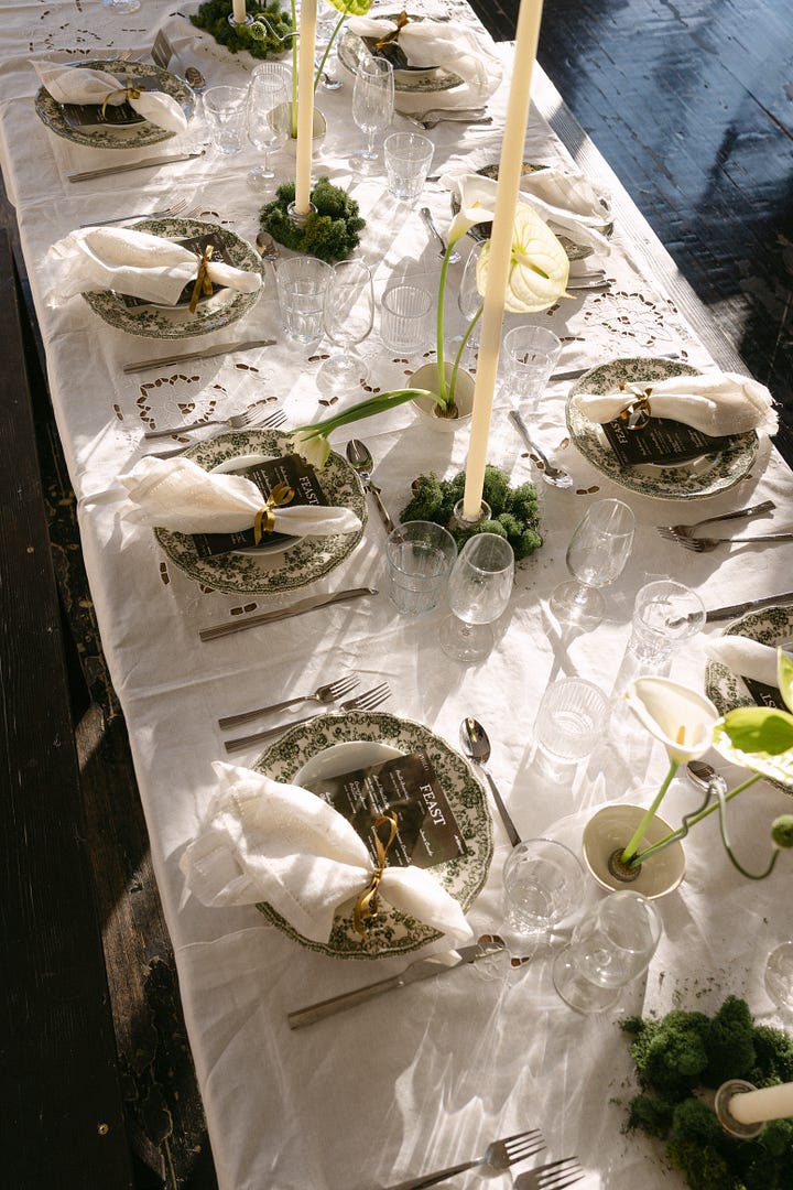 I knew I wanted to celebrate Women’s History Month this year with an intimate sit-down dinner. In the first year of Philo, so many incredible women brought me in, gave me advice, made an intro, did a favor, gave reassurance and I wanted to honor that network. I also felt inspired by those in our lives and past who have inspired us - the Legacy of our heroes. Color is also a big inspiration for me and they usually come to me all at once, like an obsession. This month? Chartreuse.