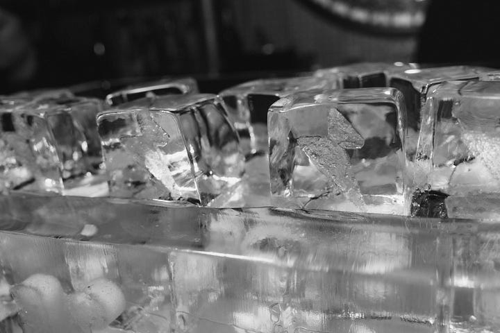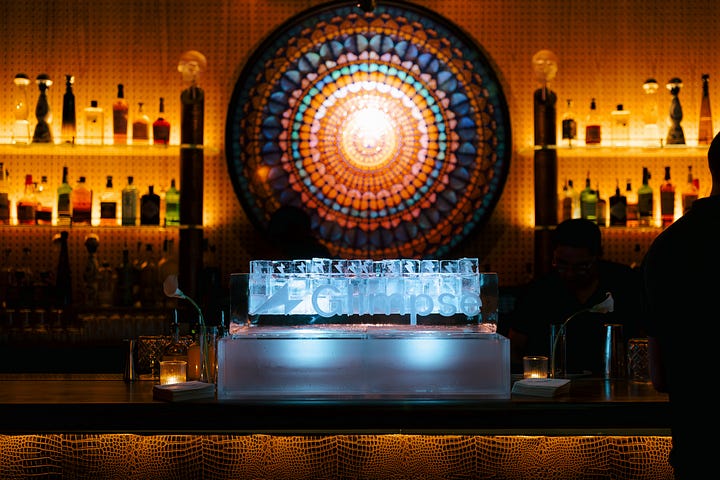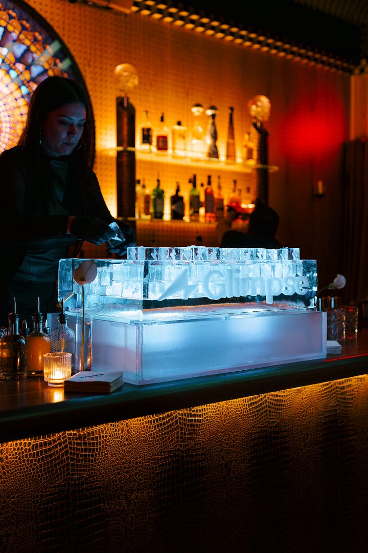 My personal favorite and the Pièce de résistance - a custom ice sculpture with the Glimpse logo + custom lightning bolt ice cubes. Love you, Okamoto.