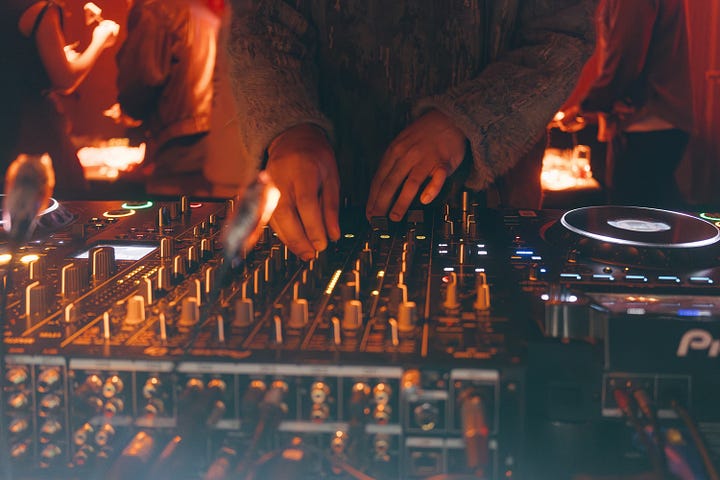 DJ Nate bringing the vibes all night + a custom neon sign.
